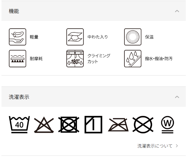 このパンツ、裏地があり、その中に薄く中綿が入っています。そんなにすごくあったかいという感じではないのですが、何か安心感みたいなものがあります。 - 撥水、撥油、防汚れ
